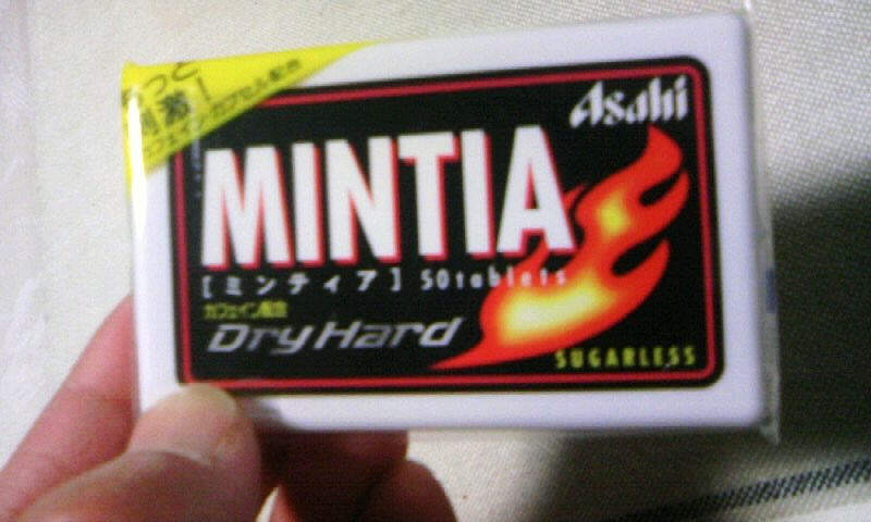 とにかくカフェインが入ったMINTIA DryHard を度々口に放り込みます。