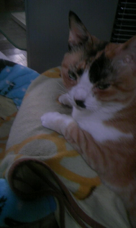 疲れたときは早く寝ちゃいましょうね。 三毛猫は、可愛いわよ~