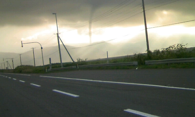 今朝、お兄ちゃんを恵庭まで送る途中、長万部で幾つもの竜巻が静狩上空で発生するところに遭遇。