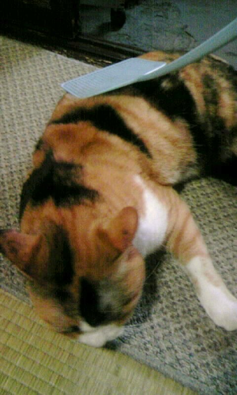 ハエたたきでパタパタと背中を叩かれると「とろ~ん」とした顔で寝そべるんです。