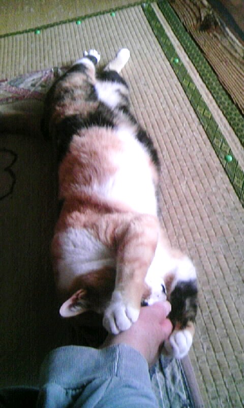 手を離そうとすると両方の前足でしっかりと私の手を捕まえて離そうとしません。