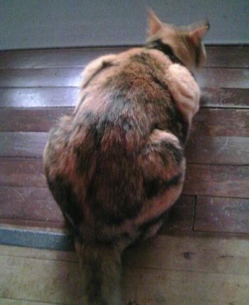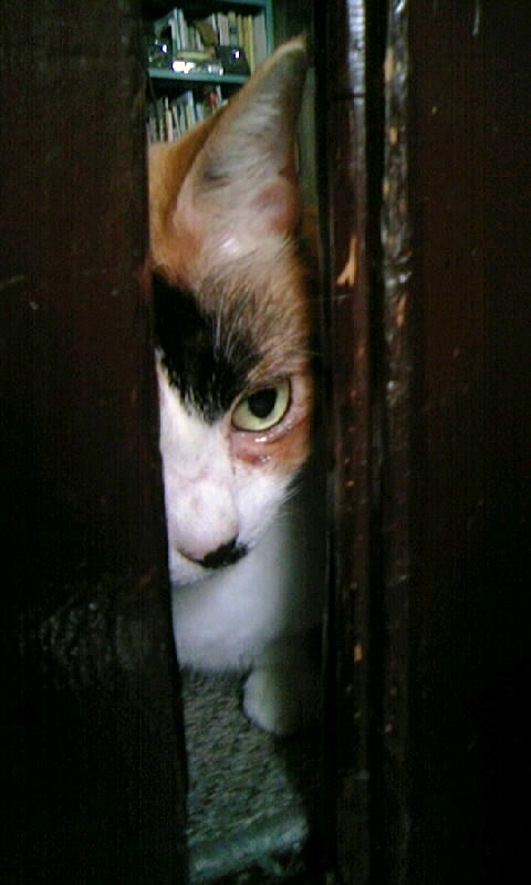 「母にゃん、見てにゃ。変な奴いるにゃ。」というので・・・壁]ω・) どれどれ