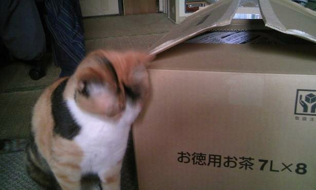 一生懸命に箱に顔をこすっているので、みっちゃんがぶれてしまいました。