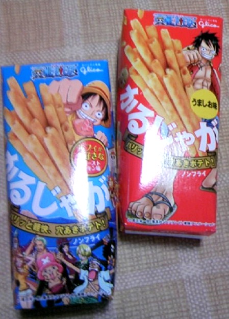 ちょっと写真がピンボケだけど、ワンピースとコラボの「かるじゃが」2種類
