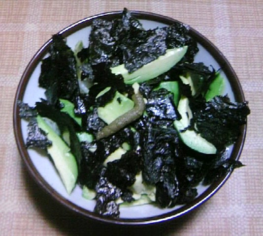 カットしたアボガド、焼き海苔をのせてわさびをトッピング。
